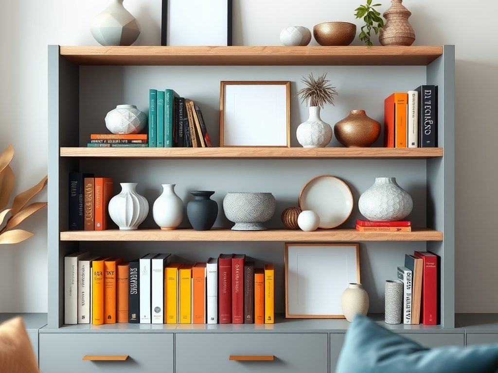 Pamiętaj o pozostawieniu pustych przestrzeni między elementami. Dzięki temu regał zyska na lekkości, a przedmioty będą mogły „oddychać”. Dostosuj również paletę kolorystyczną do 2-3 głównych barw, co zapewni spójność całej aranżacji.
